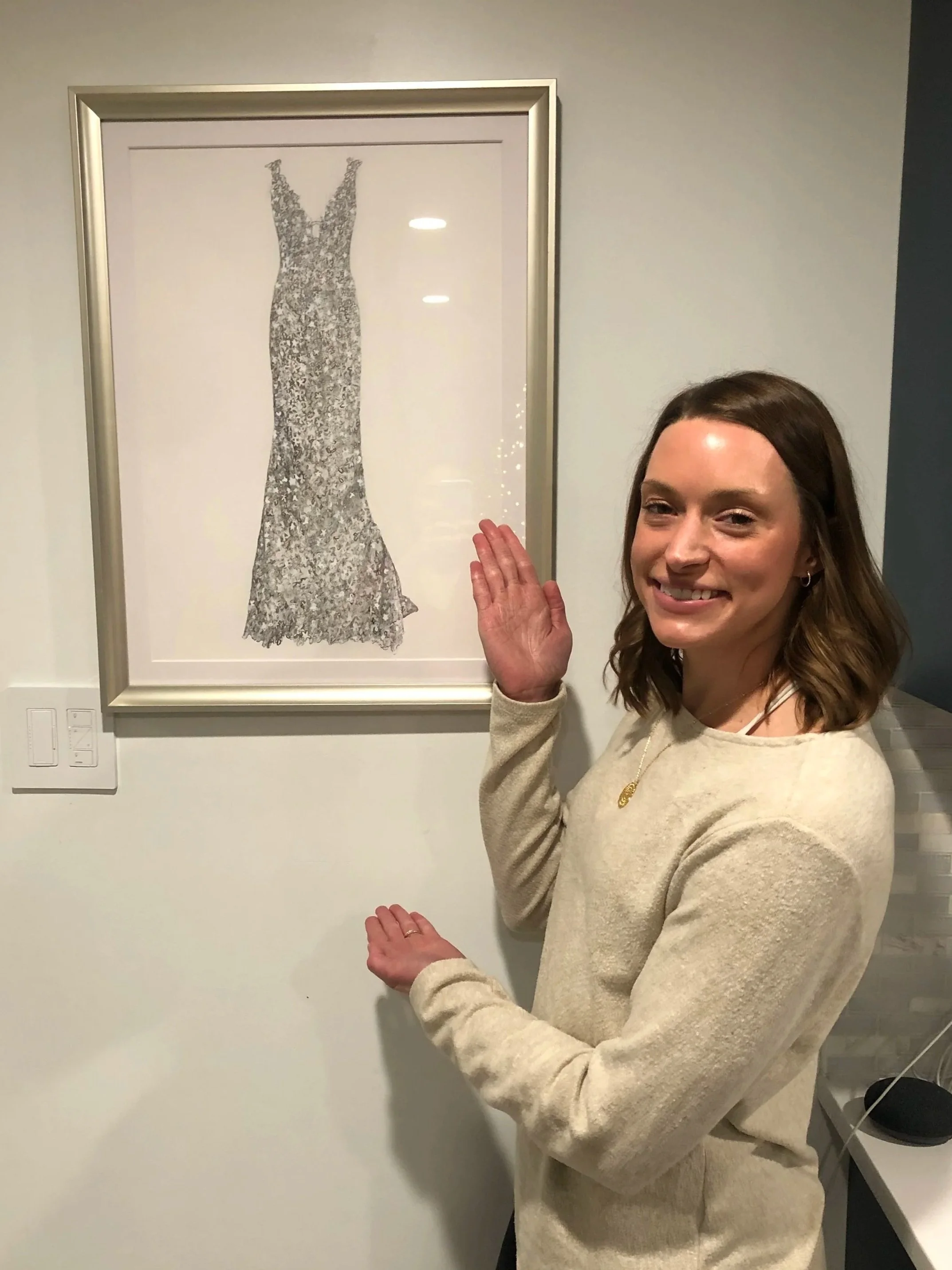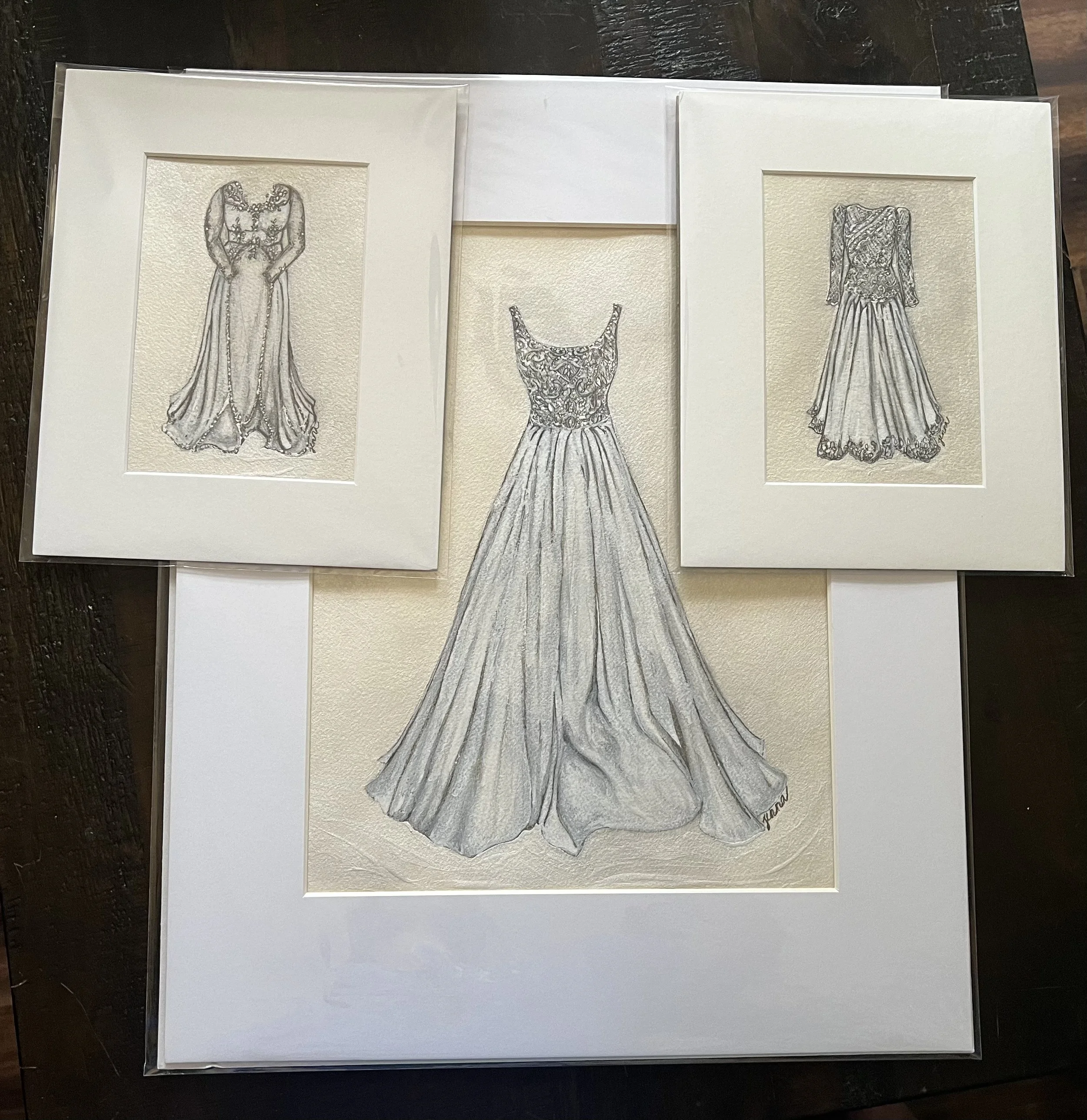 Custom, original wedding dress artwork. Perfect for wedding and anniversary gifts.